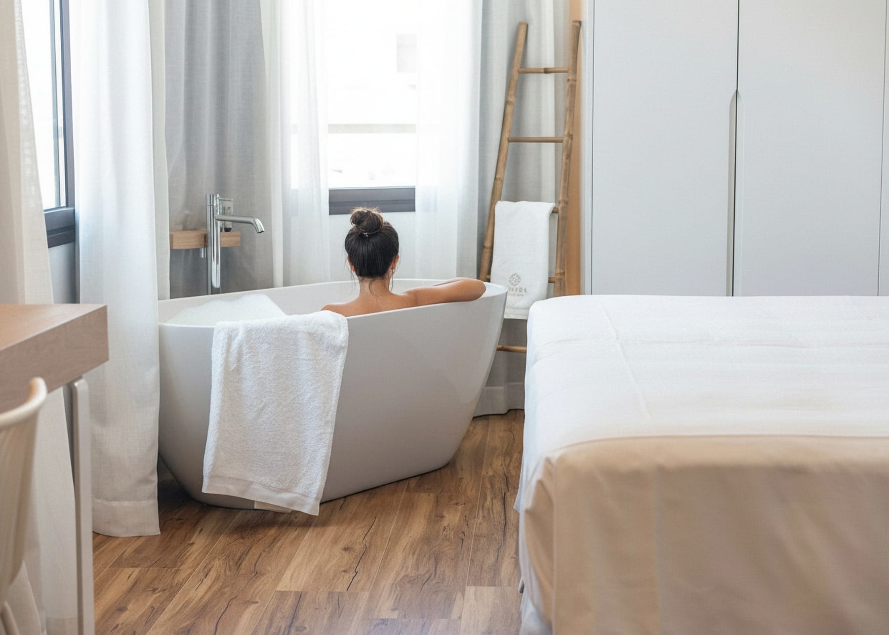 Suite luminosa con salón independiente y terraza amueblada, ideal para estancias largas y momentos de descanso absoluto.